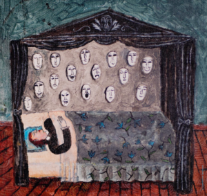 إن انتماء فن غويندولين دينوييه إلى كل هذه التقاليد ليس صدفة، بل ضرورة واضحة. فكل هذه الفنون تتواصل وتتقاطع مع بعضها البعض، كما كتب جيروم دوتيل: “الفن الساذج، الفن الشعبي، الفن خارج القواعد، الفن الفريد، الاختراع الجديد، الفن في المصحات، فن المجانين، الفن الوسيط، الفن الشاماني، الفنون المتواضعة، الإبداع الصريح، كلها مساحات تتداخل، تحتك، تتباعد حسب اللحظات والتصنيفات“. صعوبة العيش تفتح أبوابًا لأشكال تعبير أخرى، وقد حاول النقاد ومؤرخو الفن تسميتها أحيانًا بـ”فن المجانين”، خاصة بعد نشر كتاب مارسيل ريجا الفن عند المجانين عام 1907 (أعيد نشره من قبل فابيان هولاك عام 1994 ثم مارك ديسيمو عام 2017)، وهو تعبير لم يكن يهدف إلى الوصم، ولكنه يبقى إشكالياً. في نص بعنوان فن المجانين، مفتاح الحقول، أعرب أندريه بريتون عن تأييده لإعلان جان دوبوفيه عن “الفن العصاميّ” عام 1948، الفن “لأشخاص يعتبرون مرضى نفسيين وموجودين في مؤسسات عقلية”، ولكنه يشهد على حرية مطلقة. دون أن نعرف إذا كانت غويندولين دينوييه تتبنى هذا المصطلح، إلا أنها لم تتجنب علاقتها بالمرض، والعديد من الاقتباسات المنشورة في الكتاب تظهر ذلك بوضوح: “مرحباً أيها الذهان / كيف حالك / أين وصلنا […] نبني لنحطم / نذهب إلى أي مكان / ولا نعود أبدًا / إلى نقطة البداية.”؛ “إذا كنت تقرأ هذا الكتاب فأنت مجنون / إذا كنت مجنونًا ستكون قادرًا / بعقلك / على تجاوز الواقع […] بالتأكيد ستشهد أو تعيش / النزول إلى الجحيم“. في هذه السطور، الذهان هو دوار، فقدان المعالم؛ وهو معدٍ أيضاً، أو على الأقل يجذب ويجمع الأشخاص الذين يلمسهم.