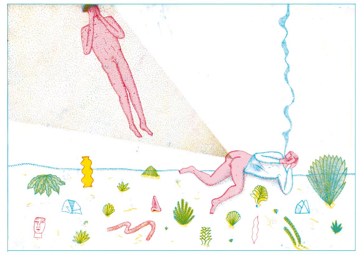 ما يلفت النظر في حياةٌ من النّدم هو تنوع التقنيات المستخدمة: الزّيت، الباستيل الزيتي، القلم، الحفر، الغواش، الكولاج… كما أنّ تنوّع المواضيع يبعث على الدوار في البداية، لكن سرعان ما تتجلى وحدة الرؤية الجمالية. نجد مناظر ليلية وبورتريهات ومشاهد هذيانية وشخصيات ذكورية صارمة وصور غامضة ومخلوقات خيالية يغلب عليها الرجال المجنّحون والمخلوقات الأسطورية مثل “المانتيكور”… كلّ ذلك يشكل عالماً حالماً أو رؤيوياً؛ وحتى أكثر الصور واقعية تخضع لرؤية شخصية تستعين بالفن الساذج لتجاوز الواقع، بتنقية الأشكال وإشعال الألوان. يسود البعد الثنائي في التمثيل، بأسلوب يعيد إحياء الفن المصري القديم أو الأيقونات الدينية التي سبقت اكتشاف المنظور، مما يخلق مساحات رمزية قوية، تتناغم مع الإشارات المتكررة إلى الإله. بعض الرسومات بالحبر الأسود والأبيض تبدو كأنها معالجة أولية، حيث تذكرنا الأشكال بأسلوب الفخار الإغريقي المرسوم أو بأعمال ديفيد هوكني في الستينيات. رغم الأسلوبية الشديدة، تحمل الشخصيات سمات جنسية واضحة، كما يتجلى ذلك في لوحة Phal[l]us dei التي تقدم تصوراً رمزياً لهذا الجانب. تتحول الأظافر إلى وجوه، وعندما لا تكون كذلك، تنتشر على اليد بأكملها أو على ظهر إحدى الشخصيات، بينما يتجلّى تعدد الأصابع في يد عملاقة تُخفي وجهًا. كل هذا مشحون بشعريّة قوية وغموض مقدس ورمزية مُكثّفة.